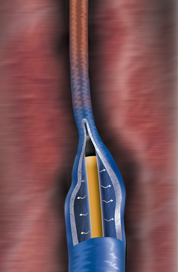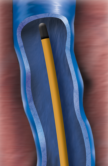 85~90˚C의 고주파 열로 정맥류가 일어난 혈관을 태워서 폐쇄시키는 시술로 1999년 FDA 공인을 받으면서 상용화된 치료법입니다.